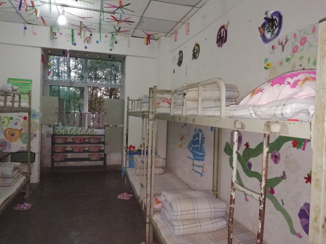 會(huì)后,袁秘書一行來(lái)到布拖縣拉達(dá)鄉(xiāng)中心校,在佛山派駐布拖任縣委辦副主任許建文、布拖縣教育和科學(xué)技術(shù)知識(shí)產(chǎn)權(quán)局局長(zhǎng)胡子丹、拉達(dá)中心校校長(zhǎng)吉玲英等陪同下,參觀了校舍。盡管宿舍條件簡(jiǎn)陋,但床鋪整整齊齊,被子疊得方方正正,拖鞋、洗漱用品等也擺放有序。宿舍天花板上點(diǎn)綴著彩帶,墻上手繪或貼著各種圖案,彰顯了孩子們的愛(ài)美之心。宿舍門口的墻上,掛著寢室室長(zhǎng)的鏡框,白底彩照下面,是“米色么小李”、“阿牛么惹扎”、“俄底么計(jì)生”、“帕查么拉克”等彝族名字,另一張寫著“樂(lè)學(xué)立德,行小以達(dá)”的校訓(xùn),校訓(xùn)下面寫著“一本書被打開(kāi)了,你的心房將永駐陽(yáng)光”。雖然天色漸暗,氣溫下降到十多度,但這句話卻讓人頓生溫暖。