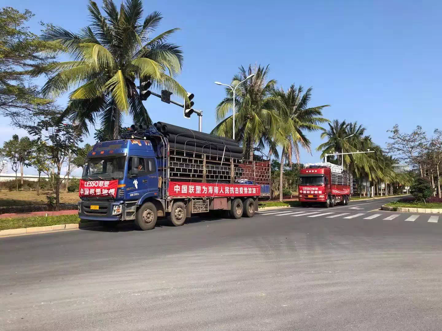 2月4日,在祖國的南邊-海南,也傳來了解放軍總醫院海南醫院發熱門診擴建的消息,該項目占地面積31271平方米,建筑面積12340平方米,建成可提供確診病床及疑似病床床位388個。由于項目需要在元宵節前投入使用,工期緊張,急需大量管材管件保障施工建設。海南聯塑公司相關負責人主動對接項目施工方,明確需求,第一時間調配海南定安廠區的管道產品,捐贈支援解放軍總醫院海南醫院建設,包含HDPE雙壁波紋管、PVC排水排污、PE給水、PP-R、線槽線管等管材管件,主要滿足項目排水排污、給水、通風、電力保護等用途。目前該項目工程在緊鑼密鼓的施工中,而海南聯塑公司的生產、倉儲、行政、物流、技術等環節員工主動請纓返回崗位,投入到該項目物資的籌備運輸中,為海南的疫情防控保障貢獻自己一份綿薄之力。
